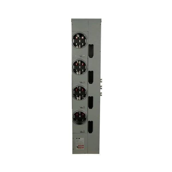 The Eaton Residential Meter Stack is a reliable and space-saving solution for multi-tenant residential metering applications. Designed for outdoor installations, this unit features four ringless meter sockets and supports single-phase in/single-phase out service. With a 200A amperage rating per socket and an 800A aluminum bus, it ensures consistent and efficient power distribution. The interrupt rating depends on the selected main circuit breaker, offering flexibility for different application requirements. Built with durable aluminum construction, this stack provides long-lasting performance in a weather-resistant NEMA-rated enclosure.