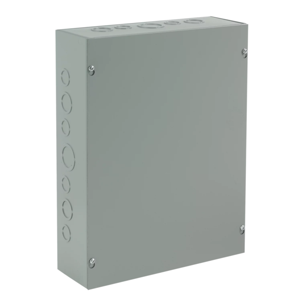 This Type 1 screw cover enclosure is built to protect electrical components in indoor commercial and industrial environments. Constructed from durable steel and coated with gray polyester powder paint, it resists corrosion and ensures long-term performance. With 8 knockouts and a compact form, it offers flexibility and reliability in smaller installations.