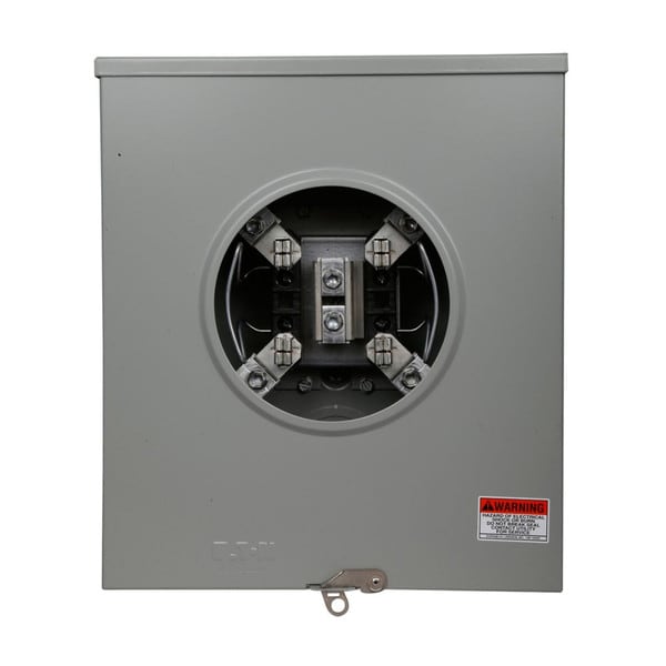 The Meter Socket is engineered for dependable power metering in residential and light commercial environments. With a 200 A, 600 V rating, it features a bottom feed design and accommodates wire sizes from 8 AWG to 250 kcmil. Its solid top hub and 4-jaw, 1-phase, 3-wire configuration offer secure and versatile utility connections. Designed for top or bottom mounting, this unit provides flexible installation options in a durable and compact form.